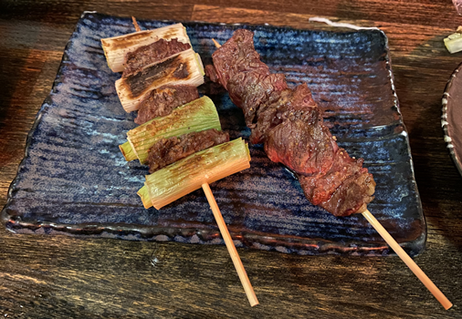 「半焼き馬刺しの串」と「ねぎま」を注文。